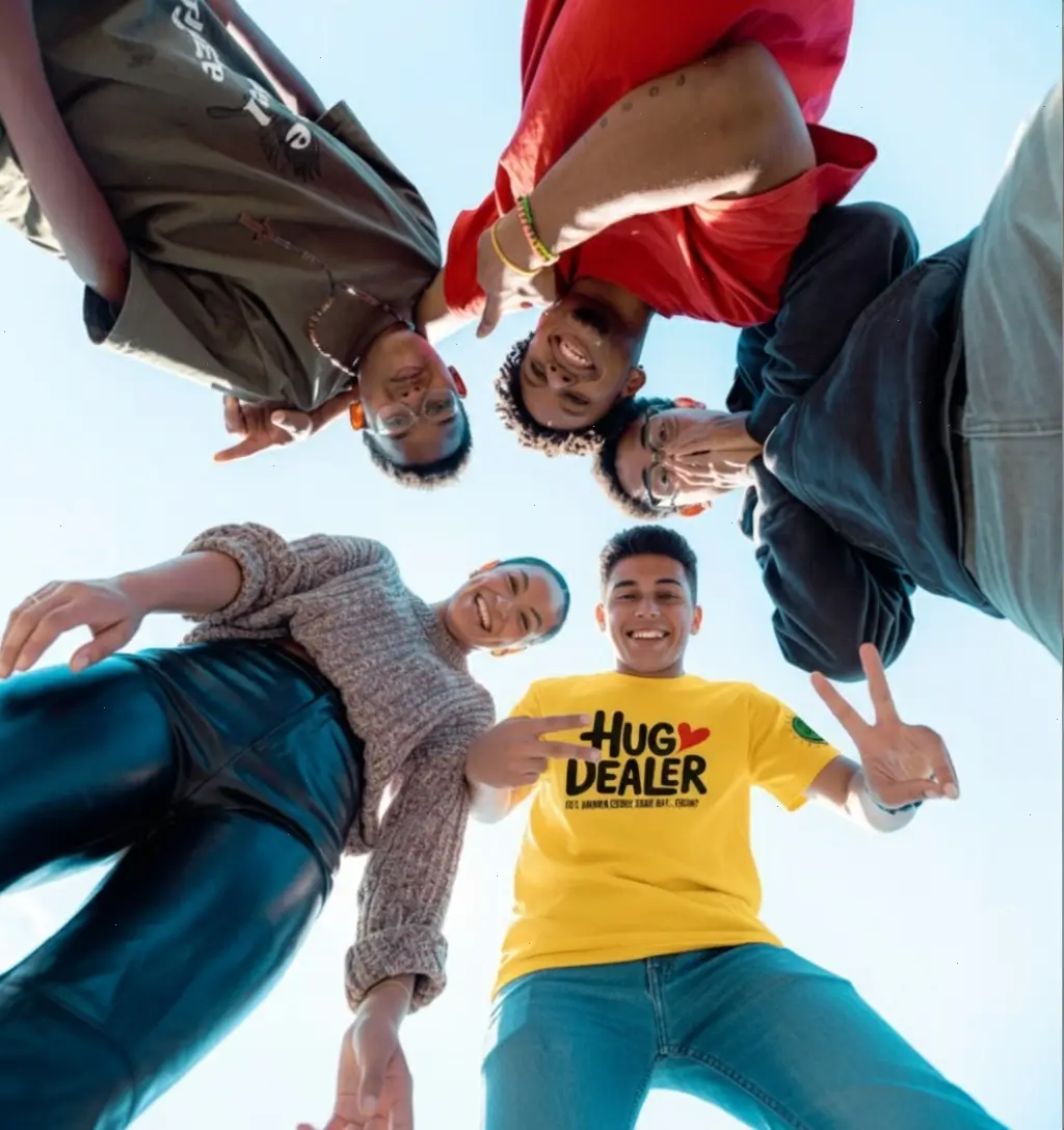 The shirt invites for you. People who want a hug touch the button on your shoulder. Zero awkward "can I hug you?" reaction.